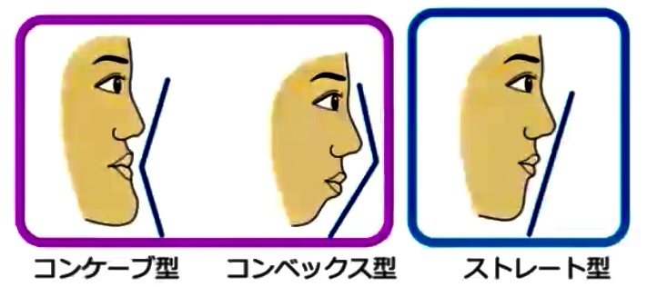 上顎(中顔面)が前方へ十分に成長していない